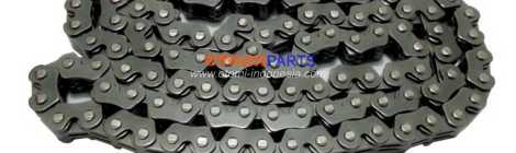 Part Name TIMING CHAIN (3*4-102L) Part No. 3W-OTM-TA-6010 Timing chain atau rantai kamrat dengan ukuran panjang 102L, digunakan pada mesin jenis CB seperti Tossa.